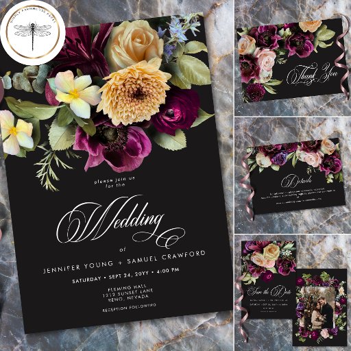 Moody Dark Floral Black Burgundy Romantic Weddingデザイン: Kathe Santillo