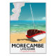Morecambe, Lancashireイギリス海辺の旅行のポスターは、快適な暖かい日の間に砂のビーチに古い木製のボートの。