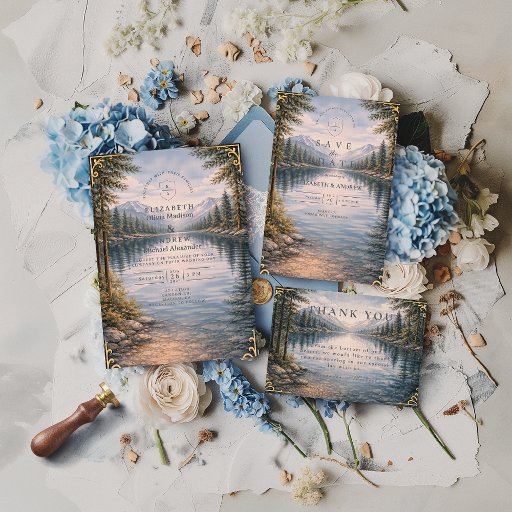 Mountain Lake Forest Reflection Wedding セーブザデート