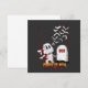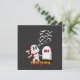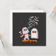 Playful bandaged mummy beside a Boo tombstone under a red starry rain. Bold orange text and retro cartoon vibe make it stand out on Halloween apparel and gifts.