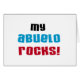 My Abuelo RocksのTシャツ、カード、シール、トートバッグ、磁石、ボタンなどの黒、青、赤のアイテムを持つ文字デザイン。この私のアブエロのアイテムは素晴らし、あなたの特別なアブエロへの愛を示す方法である!