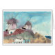 これらはカテリーナのバーの窓から見られるように島港のMykonosの有名な風車、です。 これはあなたが忘れない眺めです。