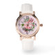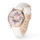 Name, Pink Poinsettia Bouquet White Leather Womans 腕時計