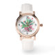 Name, Red & Green Bouquet White Leather Womans 腕時計