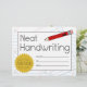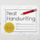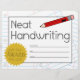 生徒に自分のきちんとした筆跡に対する報酬を与える教室賞状。背景はノートブック紙イラストレーション。デザインは、赤い鉛筆と金ゴールドシールのイラストも含む。