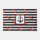 A Unique Black And White Striped With Red Anchors Nautical Theme Doormat