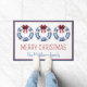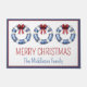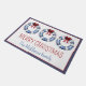 This cute coastal inspired door mat features three nautical blue and white life preserver wreaths decorated with red bows and Christmas lights. Personalize with your choice of special holiday text.