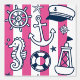 Nautical Doodles – Hot Pink & Navy Coastal Stripe 壁紙