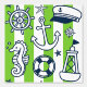 Nautical Doodles – Lime & Navy Coastal Stripe 壁紙