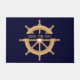 Nautical Navy Blue Wheel Custom Name Floor Mat. Customize with your boat name or your name! Classic Navy and Gold Tan nautical design to elevate the decor in your vessel or your home.