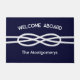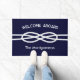Nautical Navy Blue Gold Rope Welcome Aboard Custom Name Doormat. Customize with your name or your boat name! Classic nautical design to elevate your boat or home decor Great gift idea for the boater in your life.