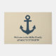 navy blue Anchor with Family Name and Coordinates ドアマット