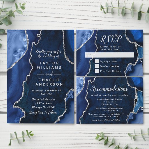Navy Blue and Silver Agate Wedding Program プログラム