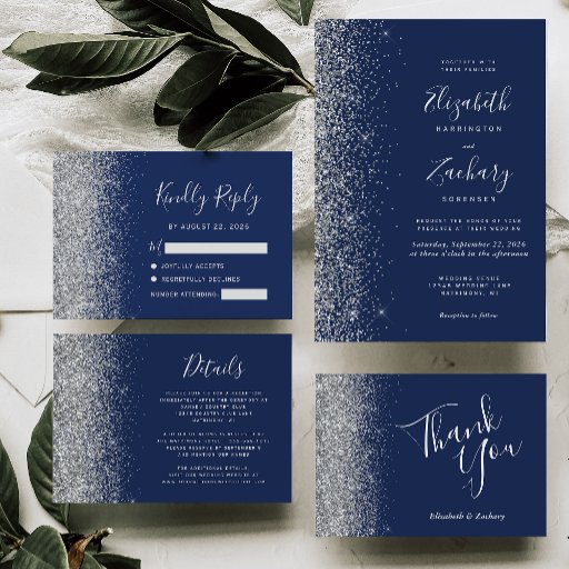 Navy Blue Silver Glitter Wedding Suiteデザイン: Akhates Designs