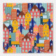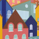 A hand drawn illustration of neighborhood block city houses. A modern abstract pattern featuring homes, buildings and architecture. An ideal design for anyone who loves the city, buildings, architecture, neighborhood house art. This neighborhood themed design is ideal for neighborhood block parties, real estate agents and modern home decor.