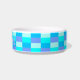Color blocks around bright neon blue and lighter and darker shades of blue.