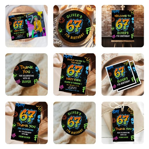 thank youbirthday thank youi was 6 now 7six seven birthday party7th birthday party67 theme boy birthdayneon birthday partymeme trending six sevenpartyneon graffitiboy birthday
