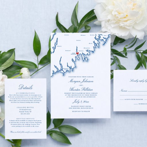New Bedford MA Map Elegant Navy Blue Wedding 招待状