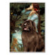 Ophelia (着席) by John W. Waterhouse (1898),茶色のニューファンドランドを含むように適応。シェイクスピア絵画のオフェリアに基づくウォーターハウス。