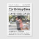 Turn your love story into the lead story. A bold SAVE THE DATE headline, classic masthead, and dateline bars frame your favorite engagement photo for an authentic newspaper look. Clean black typography and strong visual hierarchy make this editorial layout striking and easy to read, perfect for a memorable announcement that sticks around.