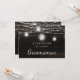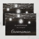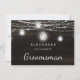 オークリー素朴ジ暗褐色のバーンドウッド、きらめくメイソン・ジャース、ストリングライトのデザイン白熱[赤熱]光を放つで、白いアクセントと深いの豊かな木の質感にダングリングライトとジャースのキラキラしたストランドを持つ。タイポグラフィスモダンクリプトフォントを使用。田舎田舎エレガントの農家のスタイルデザインパーソナライズされた-結婚の私のGroomsmanの提案カードになりなさい!~このデザインのスイート全体を結婚見るために私の店をチェック!
