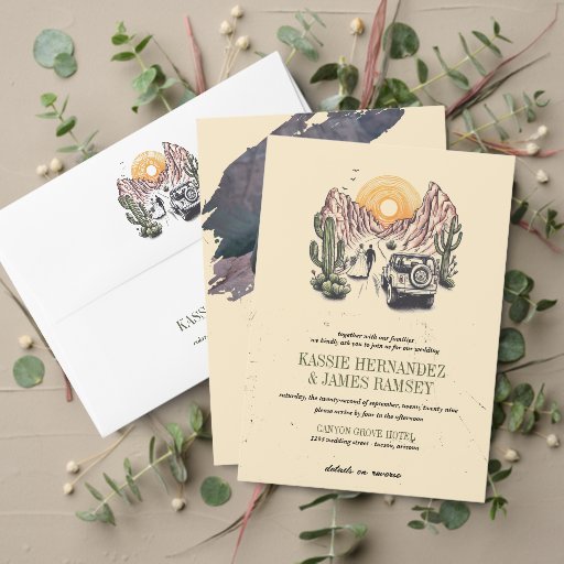 Offroad Canyon Couple Wedding 招待状 (この独立クリエイターのコレクションをカスタマイズ。テスト)Offroad Canyon Couple Wedding 招待状 (正面)Offroad Canyon Couple Wedding 招待状 (裏面)