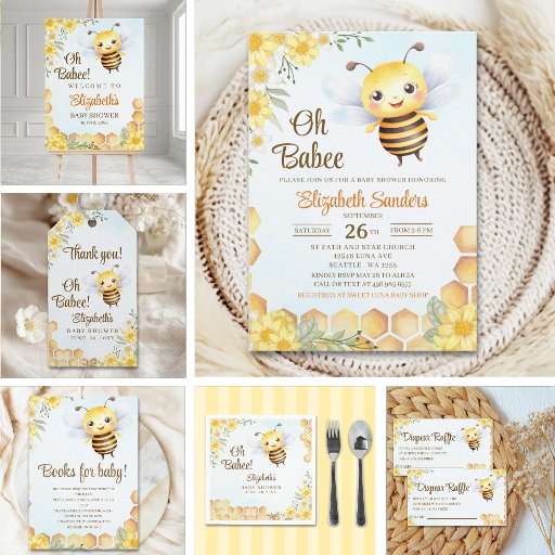 Oh Babee, Baby shower with Cute Wild bee 招待状