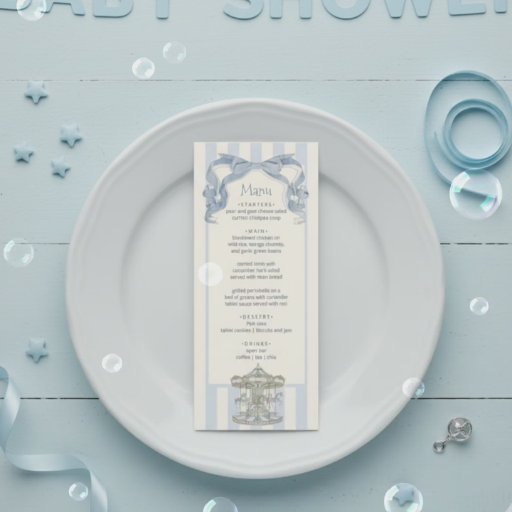 This design features the elegant Vintage Carousel and signature Blue Bow, set against the charming Blue Stripes background. Perfect for your Oh Boy Baby Shower, these stickers capture the sophisticated Carousel Horse motif beautifully.