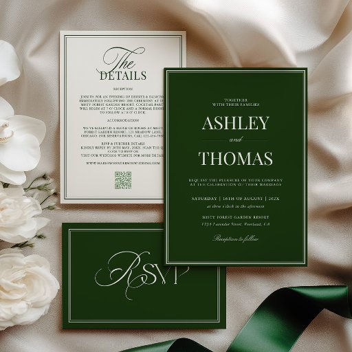Refined, timeless, and effortlessly elegant, this wedding menu features a rich old-money dark green paired with a soft ivory typography. The clean typography and classic border design evoke understated luxury—perfect for couples drawn to heritage style, quiet sophistication, and enduring romance.