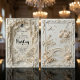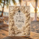 Announce your historic estate union with this old-world inspired design, featuring elegant sepia tones and a romantic cathedral illustration. This design features a highly detailed, symmetrical composition reminiscent of 19th-century engravings. A winding garden path leads the eye toward a central illustration of a classic cathedral spire, framed by an ornate border of roses and decorative scrolling. The color palette utilizes sophisticated monochromatic shades of sepia brown, warm taupe, and creamy ivory to simulate the look of aged antique paper. The text is arranged in a traditional hierarchy, combining a flowing handwritten script for names with clean, uppercase serif typography for the details.