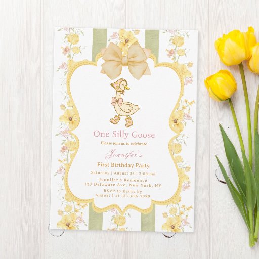 Celebrate your child turning one with these adorable paper plates. Featuring a vintage goose with a pink bow design, these plates are perfect for serving treats while adding a fun touch to your party decor.