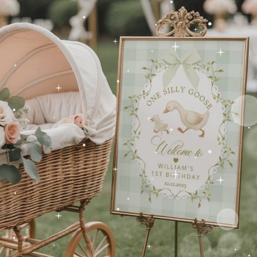 One Silly Goose Sage Gingham Bow girl 1st Birthday アクリル招待状