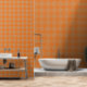 Orange Taupe Checker Diamond Pattern Wallpaper