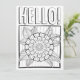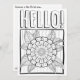 Hello - 「Hello」文字は、大きな開花と不規則な背景を持つ大きな派手な背景の上に影の効果を持つ大きなブロックの縁取り葉付き文字に現ストライプのれる。このカードに色を付け、メッセージを背面に追加する。クリックカスタマイズは、紙とサイズのオプションを追加する。OrnaMENTALs™ Good 感じ Words Coloring BookよりOrnaMENTALすべての年齢層の着色おもしろい、デザイン#0095。オリジナルのアートワークby Sue Chastain, suziqcreations.com.