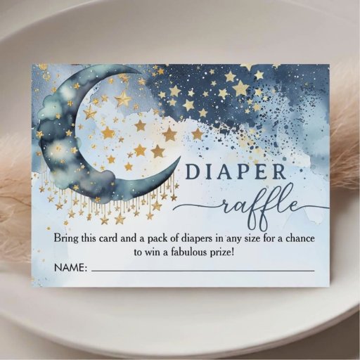 Over The Moon Baby Shower Boy Blue Twinkle Stars 招待状