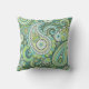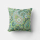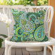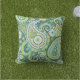This outdoor pillow features a bold paisley pattern in lime green and turquoise to brighten your patio, deck or porch.