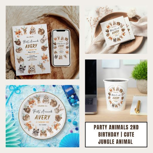 Party Animals 2nd Birthday | Cute Jungle Animal 招待状