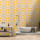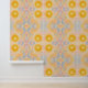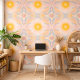 Bring warmth and gentle radiance into your space with this pastel celestial sun wallpaper. Featuring soft golden suns combined with flowing symmetrical shapes in blush, peach, and muted blue tones, this design creates a dreamy and uplifting atmosphere.
