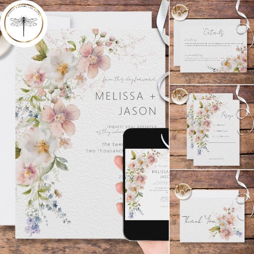 Pastel Floral Modern Wedding Thank You サンキューカード
