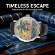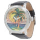 This artistic wall clock showcases a vibrant, stained glass style tropical sunset with a solitary palm tree. The design features soft, pastel hues of pink, orange, and blue, creating a serene ocean and sky. It's a colorful and relaxing home decor timepiece, perfect for adding a tranquil, tropical vibe and touch of nature to your living space.