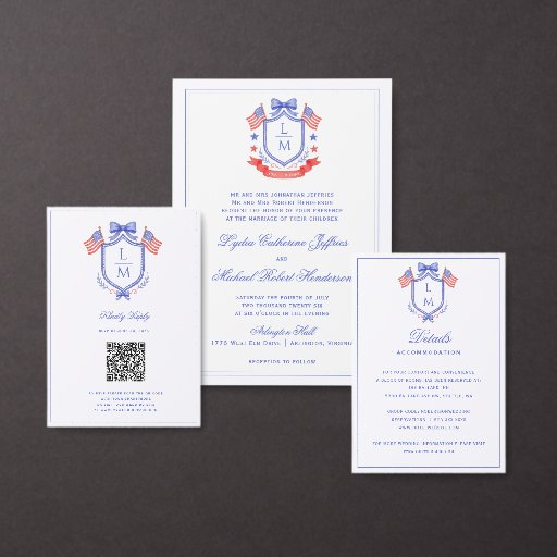 Patriotic Crest with Flags| Monogram Wedding 出欠カード