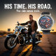 This dynamic watch face features a sleek, red and black sport motorcycle driving on a road. In the background, a large American flag gracefully drapes beneath a prominent full moon. The scene is set at night, with subtle reflections on the road and delicate foliage in the foreground, creating a striking and patriotic design for motorcycle enthusiasts.