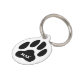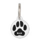 シンプル白黒のペットIDパーソナライズされたラベル。ミニマルデザインスタイルは、大きな黒足印刷イラストレーションを含み、その上に白で印刷されたカスタムペット名が印刷されている。背面には別のカスタム文字セクションがあり、このセクションを使用して電話番号やその他の情連絡報を追加できます。