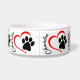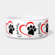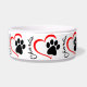Discover our custom dog bowl featuring a charming illustration of a red heart with a black paw print inside. The design showcases a bright red, curved heart outlined with fluid lines, meeting at a sharp point at the bottom, with a black paw print nestled within. Perfect for pet lovers, this unique bowl combines heartfelt symbolism with practical design, set against a clean white background. Customize your pet’s feeding experience with this adorable, meaningful dog bowl today!