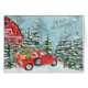 この休日のグリーティングカードの正面には、赤い納屋、雪の松の木、クリスマスグッズが詰まったトラックが完備された冬の田舎の森のシーンの印象派的なイメージがある。赤いトラックが雪の中に停まっていて、雪が舞い降りのまわりにている。上の文字は「地球の平和」と言っている。カードの内側には4つの文字フィールドがあカスタマイズる。