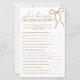 Make your celebration more interactive with this chic pearl bow “Who Knows the Bride Best” bridal shower game, featuring a delicate bow motif and elegant, feminine typography for a soft and romantic aesthetic. Perfect for game tables, activity stations, and party entertainment, this design complements coquette, classy, and modern bridal shower themes beautifully. The timeless pearl bow style coordinates seamlessly with matching invitations, signage, and décor to create a cohesive and memorable bride-to-be celebration experience.