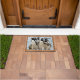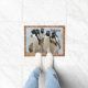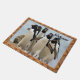 砂浜の海に沿って歩いている6羽のペンギン。 大きい石および素晴らしい空色の空を使って。 この床のマットは木製の床枠を備えています。 文字およびテキストカラーはあなたがそれにカスタムなラベルとあってほしいあらゆる色への変更である場合もあります。