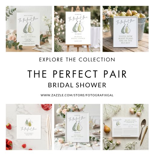 Perfect Pair Doodle Pears Bridal Shower. Available digitally and printed. The Perfect Pair is in a non-editable script. Easily personalise the rest of the words as required. With whimsical scribbly pears with sage green accents .
