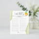 Perfect Pearコレクションの一部、このブライダルABCsゲームはすべての年齢のためのおもしろいである!一来文字に一つの単語を持ち、最も勝った人を選ぶ!ホストは、ゲストが必要とする割り当て時間を設定し遊る。すべての文字は、完全にあなたの大事な行事の詳細に一致するようにカスタマイズ可能↣単クリックに'パーソナライズ'ボタン。