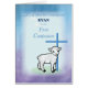 羊は、あなたの孫の最初の告白として、このカトリックのお祝い祝カードの上の青い十字の前にある。彼のために非常に個人的なカードのために彼の名前を追加!